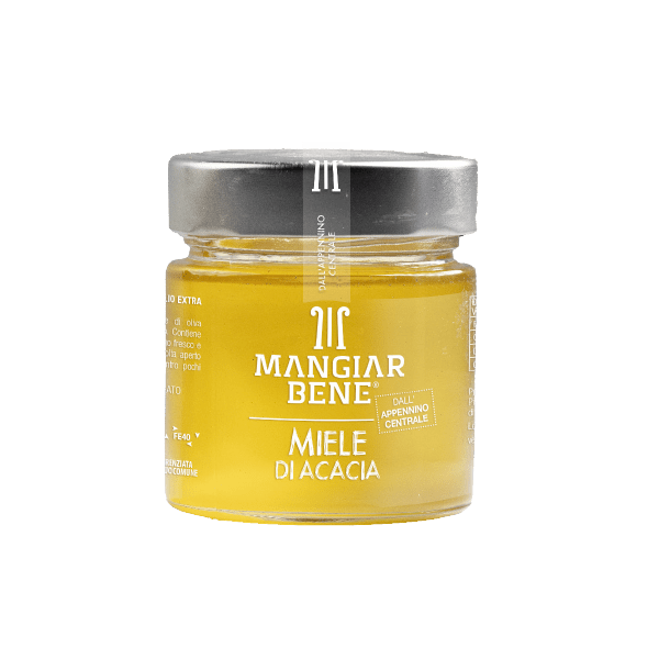 Raccolto in primavera, quando gli alberi di acacia della Val Nerina emamano i loro effluvi, profumando sentieri e campi. Mai invasivo, accompagna senza alterare il sapore dei cibi e delle bevande in abbinamento. Ideale con formaggi freschi e semistagionati.